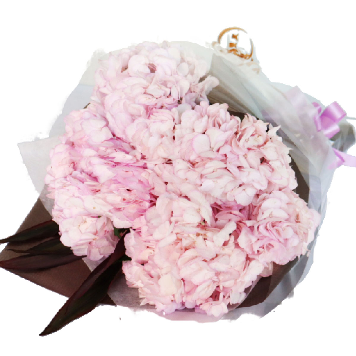 あじさいピンク5本の花束。サイズ:長さ50cm以上
