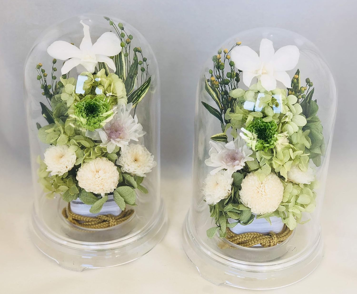 プリザーブドフラワー アレンジメント ドーム型 グリーン 一対 (2個セット)