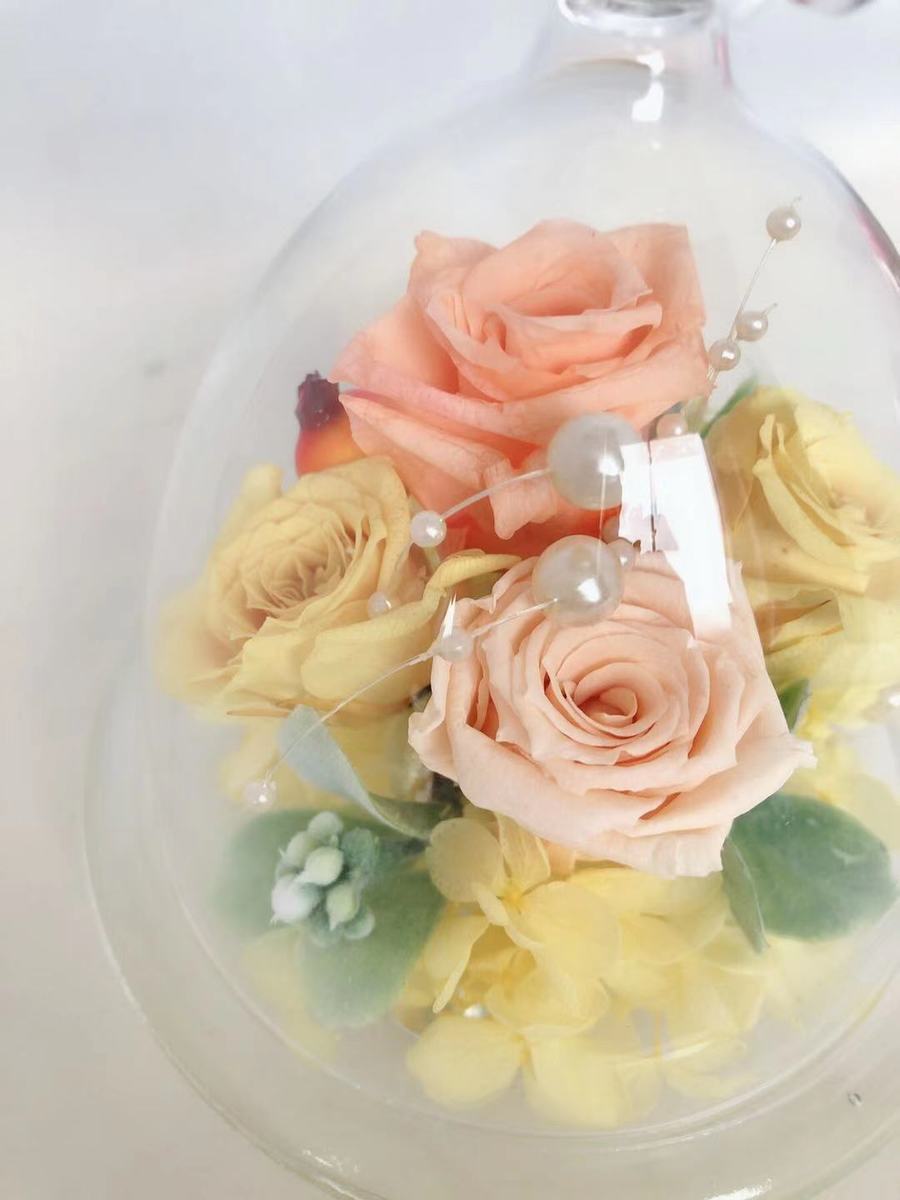 プリザーブドフラワー ガラスドーム エンジェル プレミアム パステイルイエロー