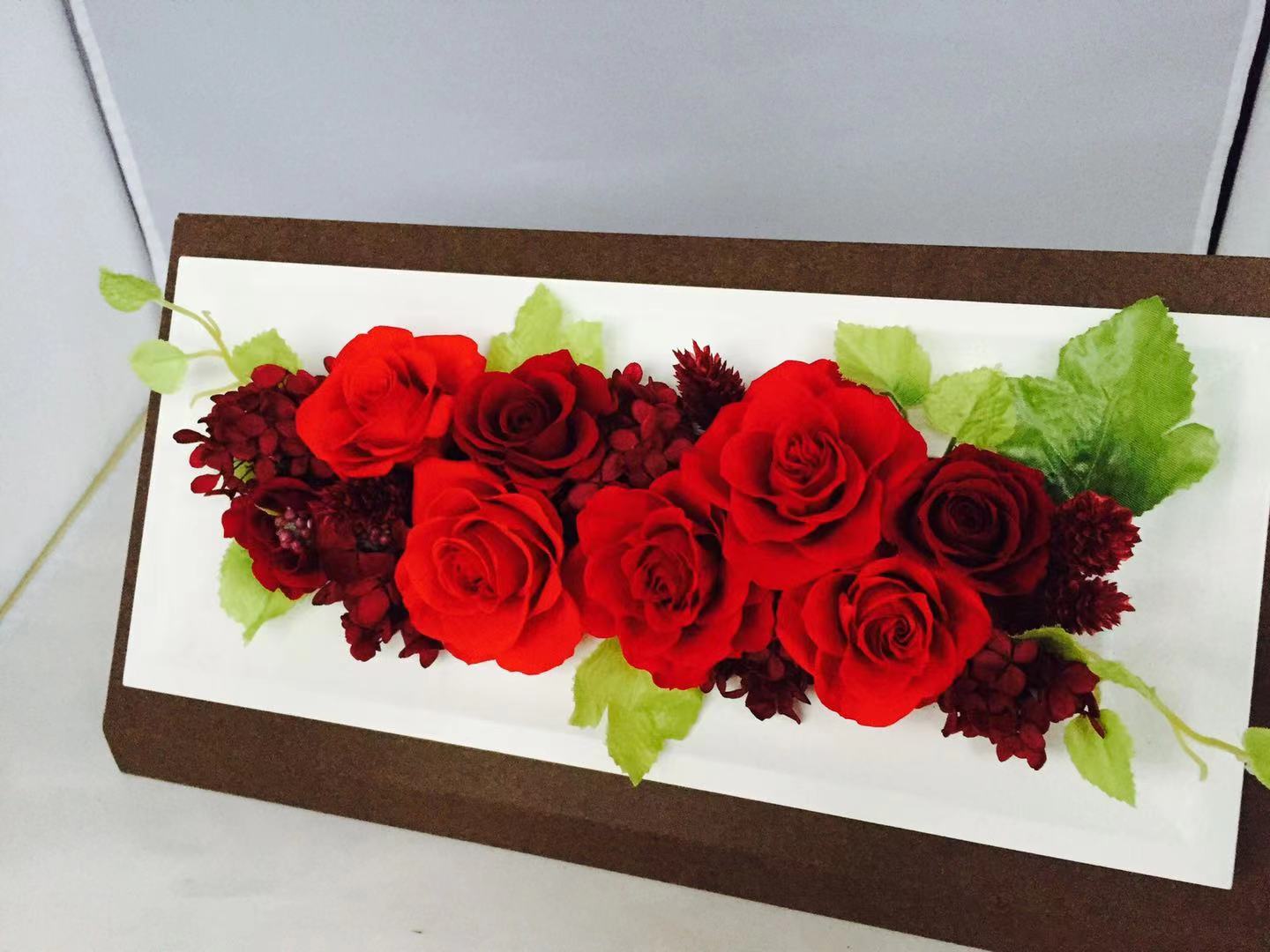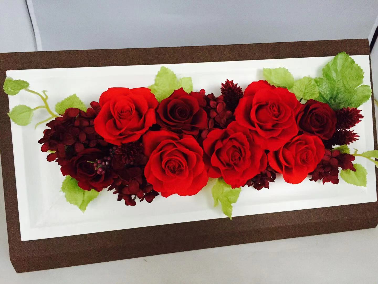 プリザーブドフラワー フレーム アレンジ サイズ:幅30cm×高さ13cm×奥行き5cm フレームアレンジレッド