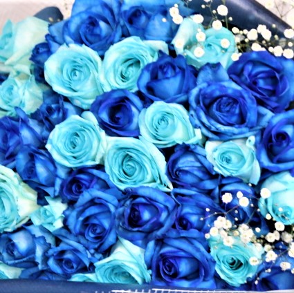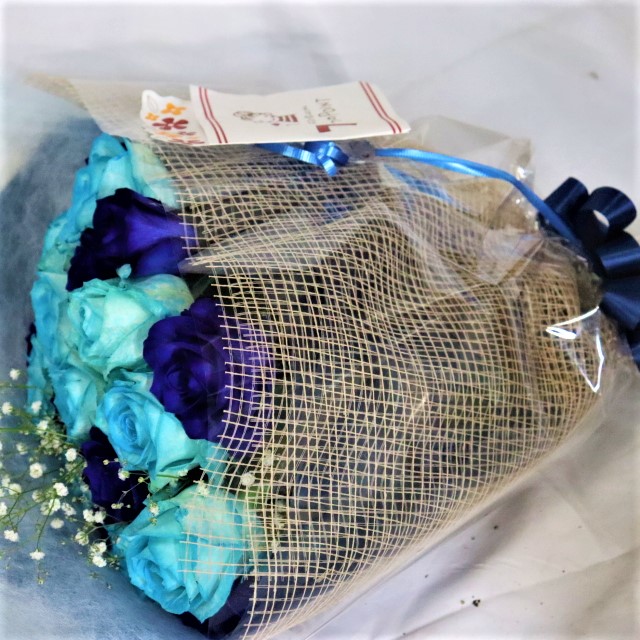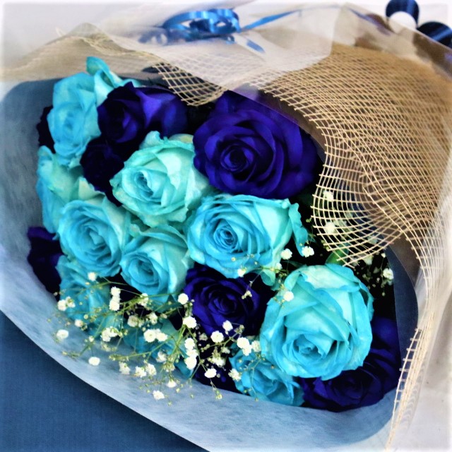 生花 花束 青いバラの花束 高級薔薇 マリンブルーローズ 「夢叶う」 お祝い プロポーズ 結婚祝い 誕生日会 かすみ草とグリーン付き ラッピングと取り扱い説明書付き 時間指定可能